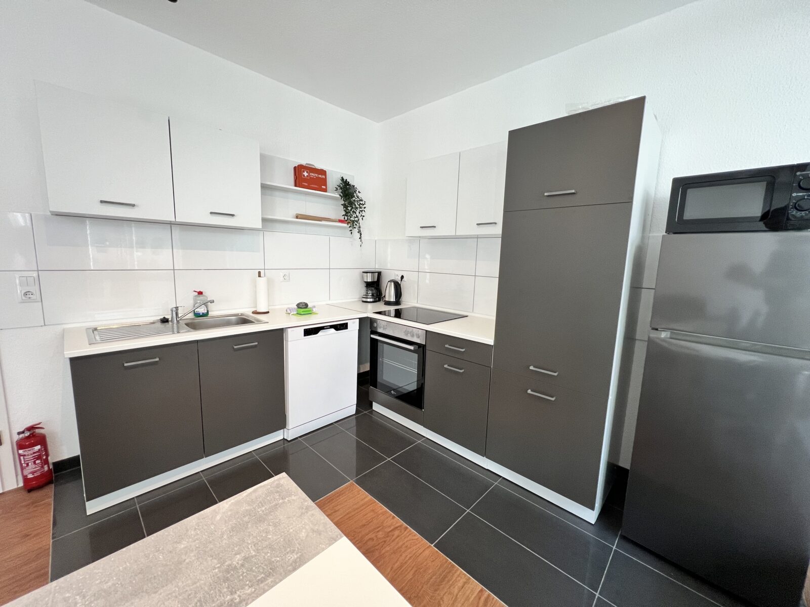 • Komplett ausgestattete Küchen (inklusive Kühlschrank, Backofen/Herd, Mikrowelle, Geschirrspüler, Wasserkocher, Kaffeemaschine, vollständigem Geschirr etc.)